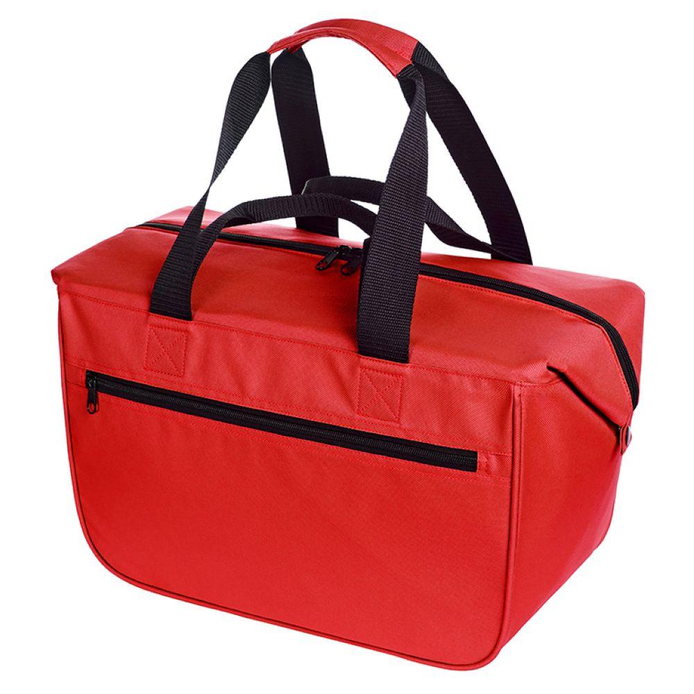 innovativer flexibler Kühlkorb; großes 2-Wege-Reißverschluss-Hauptfach; Volumenerweiterung über seitliche Druckknopflaschen; Reißverschluss-Vortasche; innen abwaschbar; Tragesystem mit Doppelgriffen und gepolsterte Griffmanschette für besten Tragekomfort; faltbar.