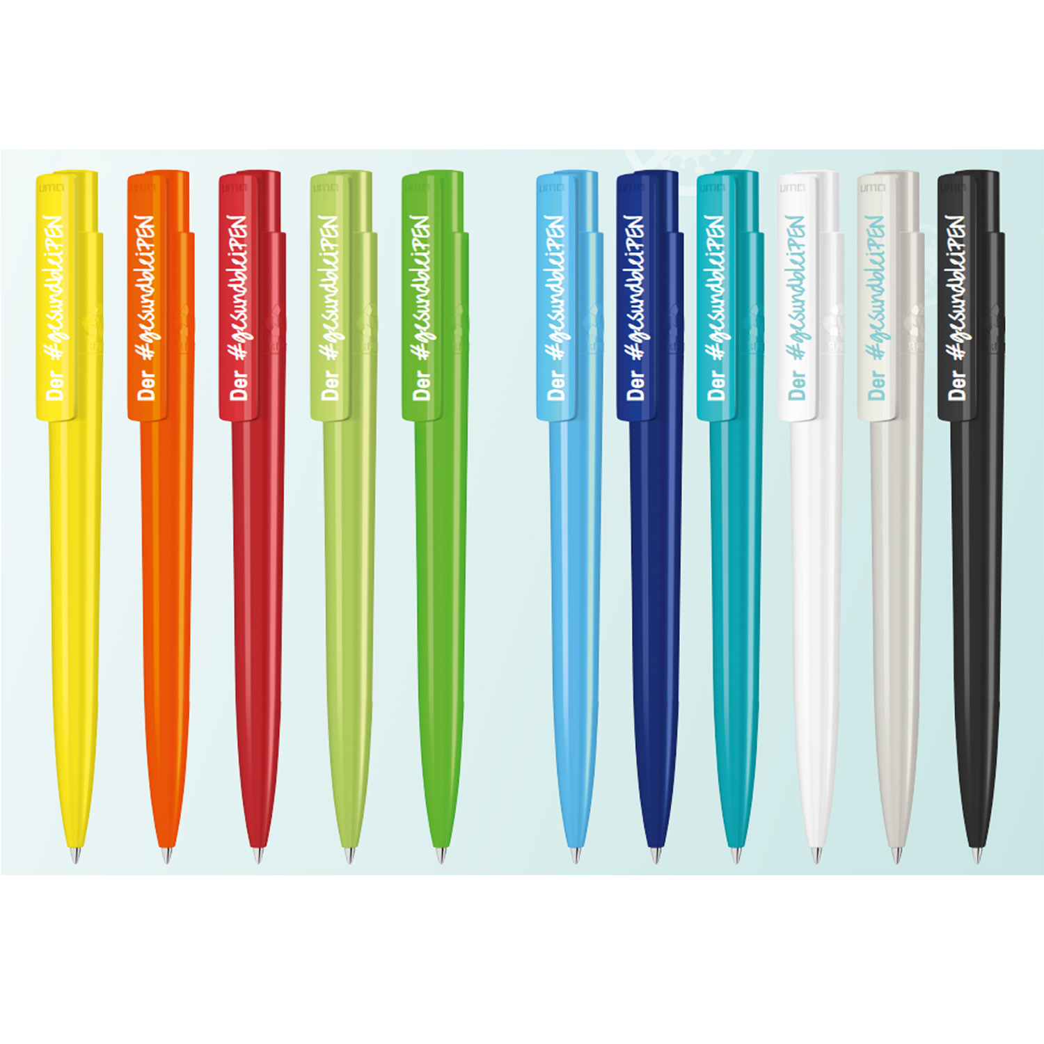 Druckkugelschreiber aus recyceltem, antibakteriellem und antiviralem rPET in gedeckt glänzendem Gehäuse und Clip. Der nach ISO 22196 und ISO 21702 geprüfte antimikrobielle Zusatz verleiht dem rPET eine antibakterielle und antivirale Wirkung auch gegen Corona-Viren. Die Haftung und Ansiedlung von Bakterien oder Krankheitserregern auf der Oberfläche des Schreibgerätes wird um 99,99% verringert. Der in das rPET Material eingearbeitete antimikrobielle Zusatz kann nicht abgerieben oder abgegeben werden und wirkt über die gesamte Lebensdauer des Schreibgerätes. Eine dauerhafte Reduzierung von Krankheitserregern ist gegeben. Das aus recycelten PET-Flaschen in Europa hergestellte rPET-Material eignet sich für langlebigen und nachhaltigen Werbeeinsatz.