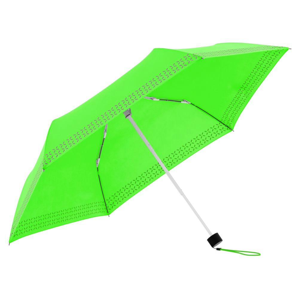 Fluoreszierender, kompakter Taschenschirm mit Reflektoren, ideal auch für Kinder. Dunkel, neblig und regnerisch - genau and diesen Tagen sorgt Safety für die nötige Sichtbarkeit bei jeder Tageszeit. Sicherheit für die ganze Familie: die Safety Regenschirmserie bietet mit reflektierenden Elementen und Tagesleuchtfarben eine besonders gute Sichtbarkeit. Mit knalligen Neon-Farben in angesagten Farbnuancen ist ein Auffallen garantiert.