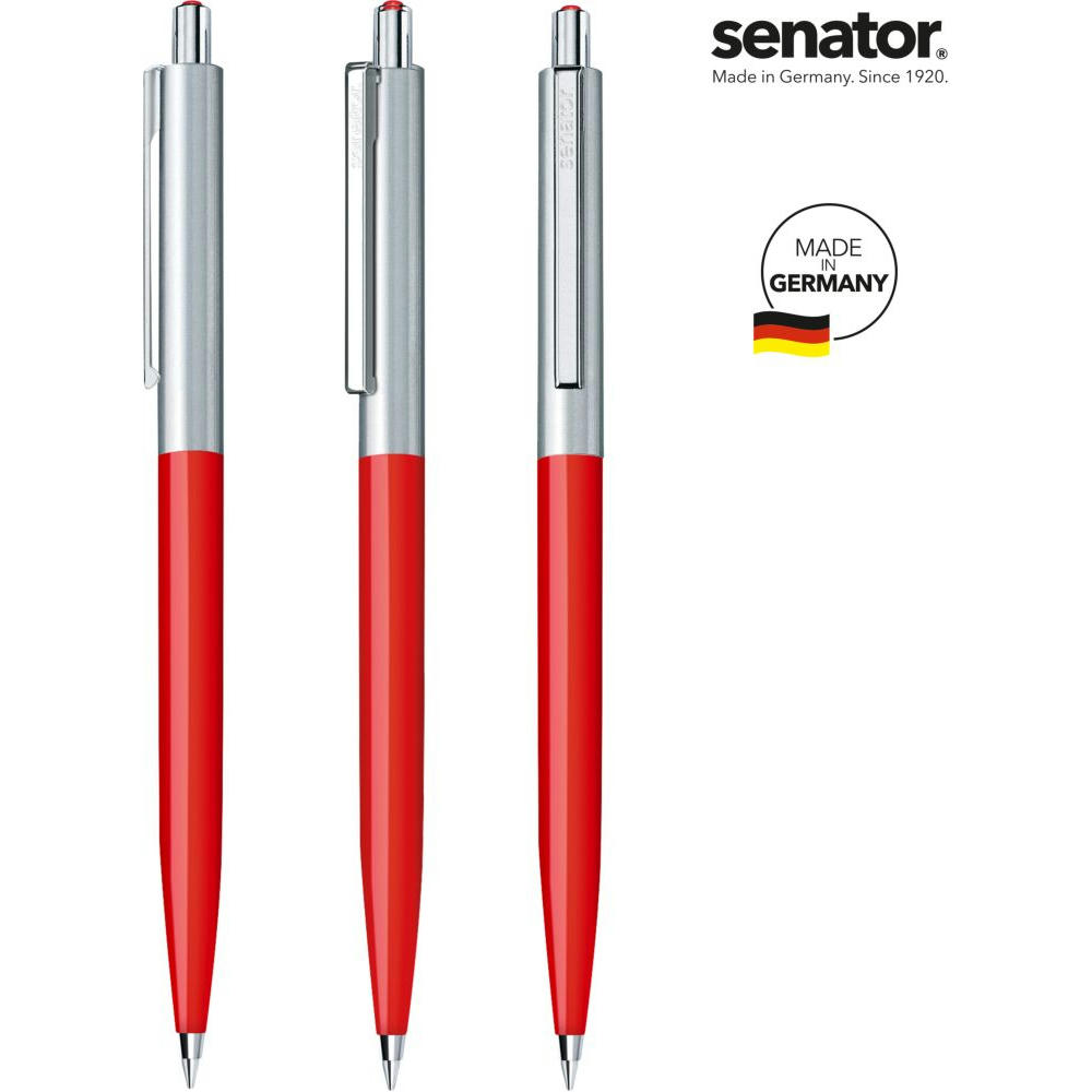 Druckkugelschreiber „senator® Point Metal“ – schlank und zeitlos. - Der „Point Metal“ kombiniert ein glänzend opakes Vorderteil mit einem Oberteil aus gebürstetem Edelstahl. Metallbeschlagteile und ein Kunststoffdekorpunkt in Schaftfarbe im Drücker runden das elegante Erscheinungsbild ab. - Ausgestattet mit einer senator® Qualitäts-Metall-Großraummine (Minentyp: G2) bietet er eine Schreiblänge von bis zu 5.000 Metern – gleichmäßig, zuverlässig und sauber. - Der Kugelschreiber ist Made in Germany und steht für höchste Qualität, Langlebigkeit und Zuverlässigkeit. Eine kostenlose Ersatzmine verlängert die Lebensdauer zusätzlich.
